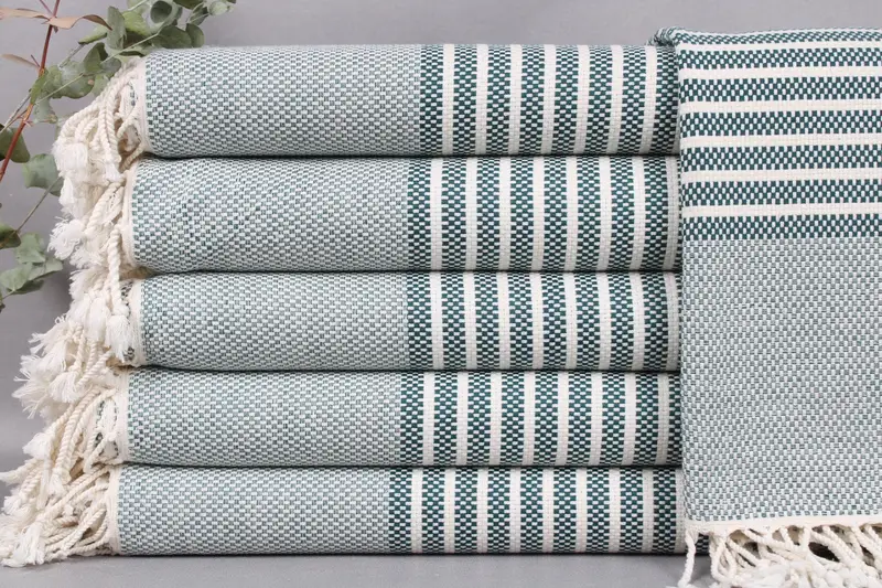 Organic Turkish cotton is utilized in the creation of these bath towels, ensuring optimal absorbency and durability. Resulting in towels that become progressively softer with each wash, especially after pre-wash treatments. Characterized by dimensions of 40x75 inches or 100x190 centimeters, weighing approximately 400 grams, these towels exhibit a tolerance of ±2 inches or 5 cm due to the manual weaving process.