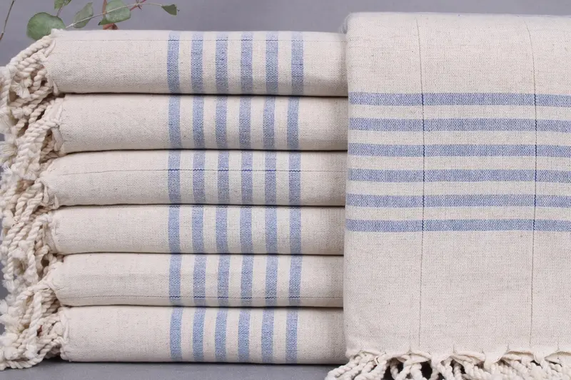 Woven from organic Turkish cotton, the beach towel is characterized by its natural fiber composition, ensuring a soft and breathable material. Handwoven on looms, each piece is a testament to meticulous craftsmanship, resulting in precise dimensions of 40x71 inches or 100x180 centimeters with a permissible tolerance of ±2 inches or 5 centimeters. Weighing 330 grams, the towel provides both absorbency and durability.