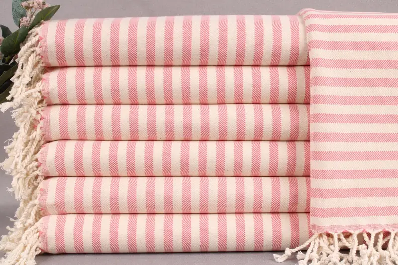 All products, including beach towels, hand towels, and blankets, are meticulously woven from organic Turkish cotton on traditional looms, ensuring a high-quality, handmade finish. Characterized by their dimensions of 24x40 inches or 60x100 centimeters, these items weigh approximately 130 grams each, with a weaving tolerance of ± 2 inches or 5 centimeters. Customization options include embroidery, names, or logos, with specific details required for personalization such as letters/names/logos, font preference, color, and placement.