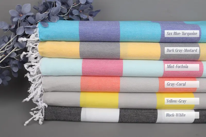 Characterized by its organic cotton composition, the towel ensures high absorbency and durability. The product is handmade from organic Turkish cotton, resulting in a towel that is soft and environmentally friendly. Weighing 300 grams, the dimensions are 70x36 inches or 90x180 centimeters, with a hand-weaving tolerance of ± 2 inches or 5 centimeters.