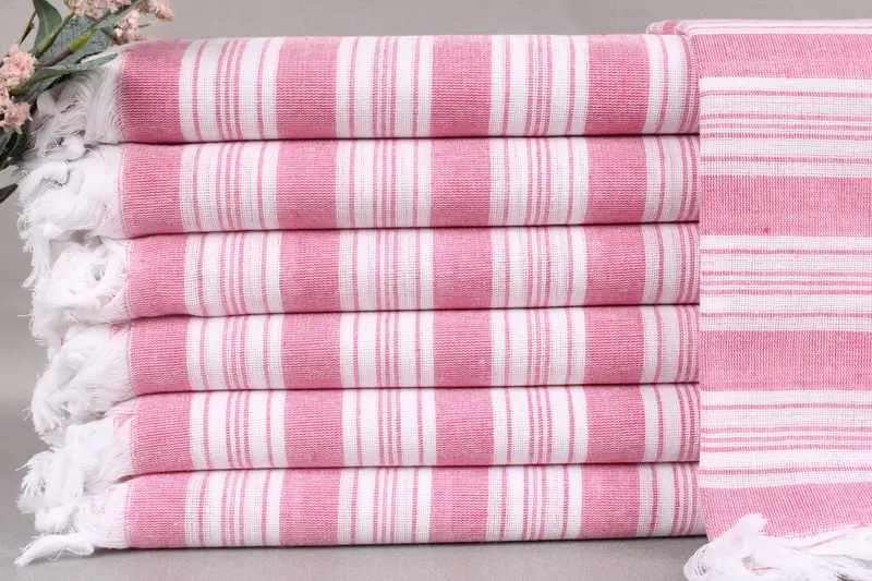All products are woven from organic Turkish cotton, ensuring high quality and natural absorbency. Resulting in a lightweight yet durable towel, each piece measures 40x71 inches or 100x180 centimeters, with a weight of 124 grams. The tolerance for weaving is ± 2 inches or 5 centimeters.