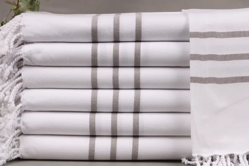 All products are composed of organic Turkish cotton, ensuring high absorbency and durability. Each towel measures 40x71 inches or 100x180 centimeters, with a weight of 420 grams. The hand-weaving tolerance results in a size variation of ± 2 inches or 5 centimeters.
