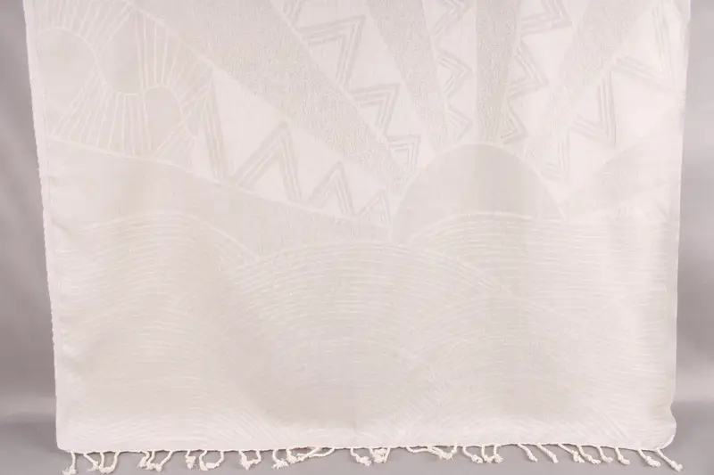 The bath towel is characterized by its fiber composition of Turkish cotton, ensuring maximum absorbency and soft texture. It is hand-woven from organic Turkish cotton, resulting in a high-quality product. Each towel measures 40x67 inches or 100x170 centimeters, with a tolerance of ±2 inches or 5 centimeters due to the hand-weaving process. Weighing 320 grams, these towels offer substantial absorbency suitable for various uses.