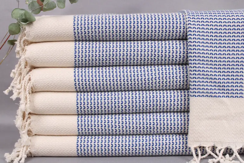 Woven from organic Turkish cotton, these towels are characterized by their high absorbency and durability. The fiber composition ensures optimal moisture wicking and quick drying, making them ideal for various applications. Dimensions are precisely 20x40 inches or 50x100 centimeters, with a tolerance of ±2 inches or 5 centimeters due to the hand-weaving process. Weighing 140 grams, they provide a substantial yet lightweight feel.