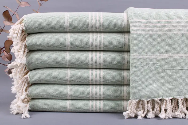 Turkish cotton products ensure durability and superior absorbency, resulting in soft and high-quality textiles. Characterized by dimensions of 40x67 inches (100x180 cm), these towels weigh between 425-475 grams, with a weaving tolerance of ±2 inches (±5 cm). Each product offers embroidery customization options, allowing for personalization of letters, names, or logos with precise details.