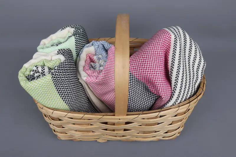 Ensuring premium quality, each Turkish towel is woven from organic cotton, resulting in a soft and sustainable textile. The towels, measuring 70x40 inches or 100x180 centimeters, weigh 390 grams, and are handcrafted with a tolerance of ±2 inches or 5 centimeters. Characterized by customization options, each towel can be personalized with embroidered letters, names, or logos, with standard font or custom selections available.