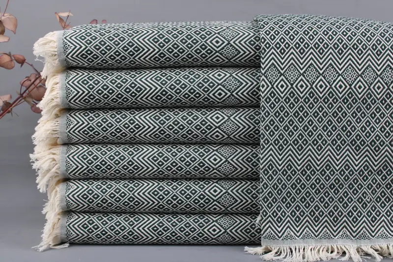 Woven from organic Turkish cotton, the towels ensure durability and high absorbency, characterized by their handmade craftsmanship on looms. Each towel measures 40x71 inches or 100x180 centimeters and weighs approximately 420 grams, allowing for a ± 2" or 5cm tolerance due to hand-weaving techniques. Embroidery customization is available for personalization with letters, names, or logos, and orders over 35 USD qualify for free shipping with worldwide delivery within 2-5 business days. Pre-shrunk towels should be washed before the first use and ...