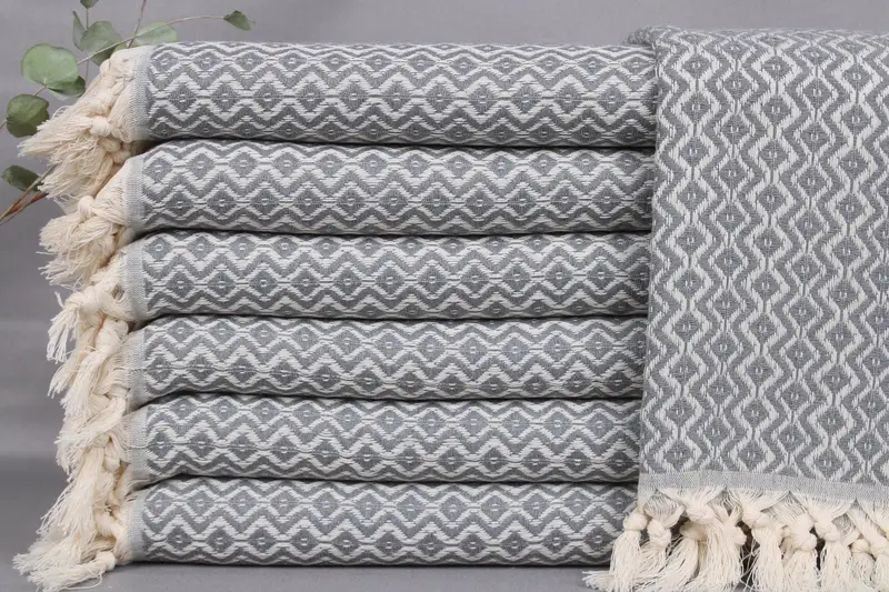 Woven exclusively from organic Turkish cotton, these towels are characterized by their hand-weaving on looms, ensuring superior craftsmanship and quality. Resulting in towels that measure 18x36 inches or 45x90 centimeters with a tolerance of ± 2 inches or 5 centimeters, they weigh approximately 120 grams per towel. Towels are pre-shrunk and should be washed before first use to achieve optimal softness.