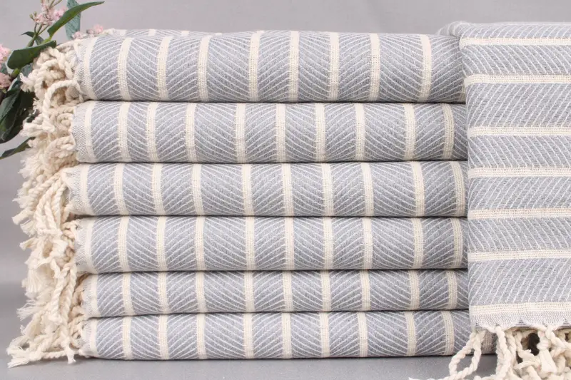 The product is characterized by its organic Turkish cotton composition, ensuring durability and superior absorbency. Measuring 40x71 inches or 100x180 centimeters with a weight of 300 grams, these towels exhibit hand-weaving tolerances of ±2 inches or 5 centimeters. Each towel can be personalized with embroidery or a name and is pre-shrunk. Orders over $35 benefit from free worldwide shipping, with delivery managed by FedEx or DHL Express within 2-5 business days. Furthermore, the product comes with a comprehensive return policy detailed on the...