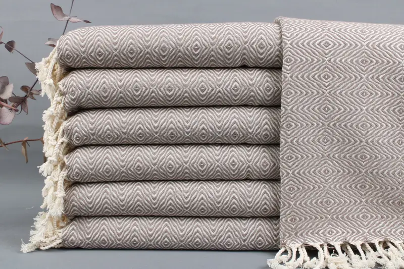 Each towel is woven from Turkish cotton, ensuring absorbency and durability. Measuring 18x36 inches or 45x90 centimeters, these towels weigh 90 grams with a tolerance of ± 2 inches or 5 centimeters due to hand-weaving techniques. Customization through embroidery is available, allowing for letters, names, or logos at specified placements and colors.