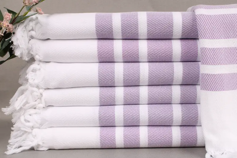 The product comprises beach towels woven from organic Turkish cotton, ensuring durability and quality. These towels are characterized by their dimensions of 40x71 inches or 100x180 centimeters, with a tolerance of ± 2 inches or 5 centimeters, resulting in a total weight of 380 grams. Each towel is hand-woven on looms, contributing to their unique texture and softness.