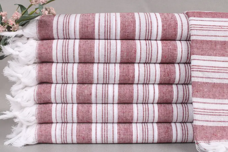 The personalized towels, including Turkish towels and striped towels, are woven from organic Turkish cotton on looms, ensuring exceptional softness and durability. Each towel measures 40x71 inches or 100x180 centimeters, weighing 124 grams. The weaving process allows for a size tolerance of ±2 inches or 5 centimeters.