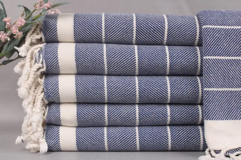 Turkish towels, such as the Monogrammed Beach Towel, are woven from organic Turkish cotton, ensuring superior absorbency and durability. Each towel is handmade on looms, resulting in a product characterized by intricate craftsmanship. Measuring 40x71 inches or 100x180 centimeters, with a weight of 360 grams, these towels exhibit a ±2-inch or 5cm tolerance due to the weaving process.
