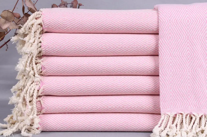 Turkish towels and blankets are woven from organic Turkish cotton, ensuring a soft and absorbent fabric. Characterized by a weight of 456 grams, the dimensions of these items are 40x74 inches or 100x186 centimeters, with a tolerance of ±2 inches or 5cm due to hand-weaving techniques. Each item includes options for embroidery with letters, names, or logos, in specified fonts and colors, providing a customizable and personalized finish.