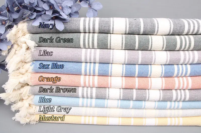 Organic cotton characterizes the fiber composition of the towel, ensuring superior absorbency and softness. Resulting in a product that is gentle on the skin and effective for various uses. Dimensions of the towel are 70 x 40 inches or 100 x 180 centimeters, with a weight of 340 grams. Hand-weaving tolerances allow for variations of ±2 inches or ±5 centimeters.