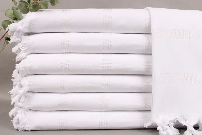 Each towel is woven from organic Turkish cotton, ensuring superior absorbency and softness. Characterized by a generous size of 30x69 inches or 75x175 centimeters, with a weight of 200 grams, these towels provide both comfort and durability. Tolerances in size due to hand-weaving may vary by ± 2 inches or 5 centimeters.