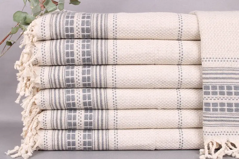 The beach towels are woven by hand on looms and undergo pre-shrinking processes. They become softer with each wash and should be washed separately during the first two washes. Wash the beach towels at 30-40...