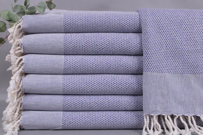 Each towel is composed of organic Turkish cotton, ensuring high absorbency and durability. Measuring 24x44 inches or 60x110 centimeters, these towels weigh approximately 150 grams and are woven by hand with a tolerance of ± 2 inches or 5 cm. Embroidery customization is available, allowing personalization with letters, names, or logos. Towels require pre-washing to soften fibers, with recommended washing at 30-40 degrees Celsius and low cycles.