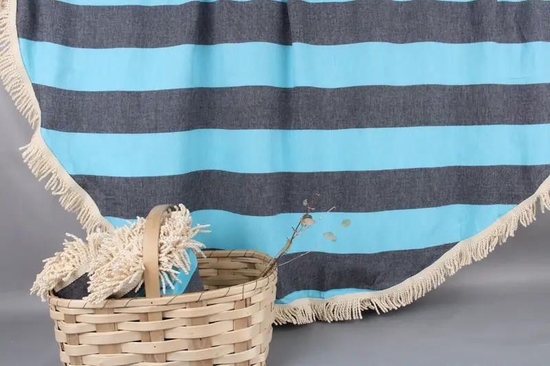 Turkish Towels are woven from organic Turkish cotton ensuring exceptional absorbency and durability. Each towel is characterized by a precise 63x63 inches or 160x160 centimeters size, weighing approximately 500 grams, with a hand-weaving tolerance of ±2 inches or 5 centimeters. Customization options include embroidery of letters, names, or logos, with specific details for font, color, and placement noted during the ordering process.