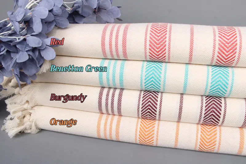 The quick-dry peshtemal, woven from organic Turkish cotton, ensures rapid evaporation of moisture, characterized by its 70x40 inches dimensions or 100x180 centimeters, with a tolerance of ± 2 inches or 5 centimeters due to the hand-weaving process. Weighing 340 grams, this bath towel is part of the 'Bath' size category, designed to absorb water efficiently. Each item can be personalized, offering options for embroidery or name placement, allowing for customization with specific fonts, colors, and positions. Delivery is free for orders over 35 U...