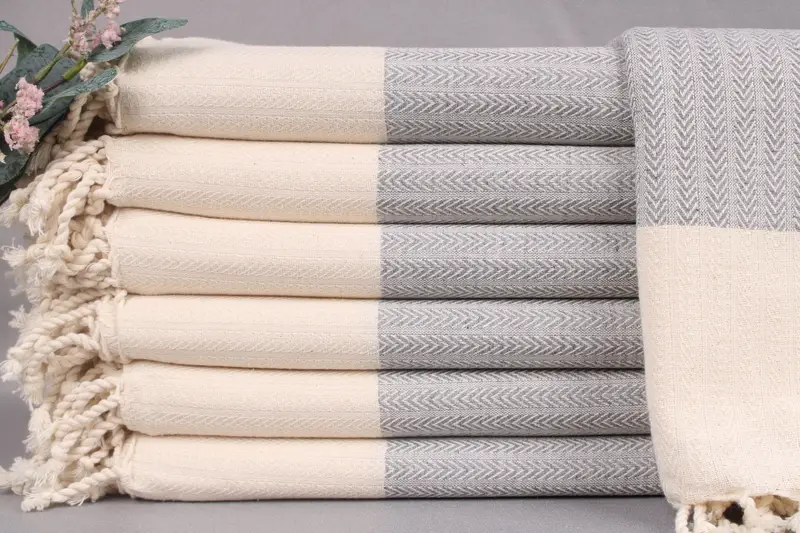 Characterized by Turkish cotton, the bath towel demonstrates superior absorbency and durability. Resulting from a high gram weight of 420 grams, the towel ensures substantial thickness and comfort. Each towel is meticulously hand-woven, allowing for a dimensional tolerance of ±2 inches or 5cm.