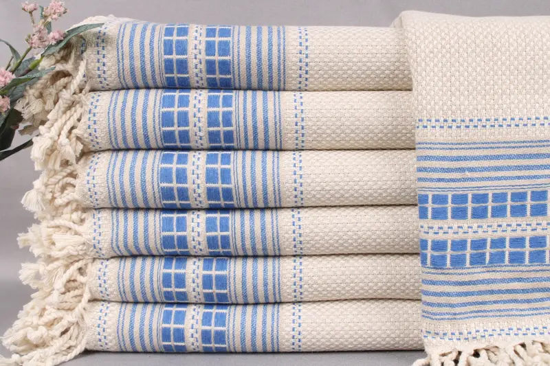 Characterized by superior absorbency, Turkish beach towels are woven from organic Turkish cotton, ensuring durability and softness. Each towel measures 38x65 inches or 95x165 centimeters and weighs 420 grams, with a weaving tolerance of ± 2 inches or 5 centimeters. Hand-woven and pre-shrunk, these towels are ready for various applications.