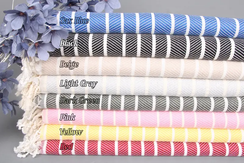 Absorbency is ensured through the use of organic Turkish cotton fibers, renowned for their moisture-wicking properties. Each beach towel is woven by hand on traditional looms, resulting in towels that are consistently 70x40 inches or 100x180 centimeters, with each piece weighing approximately 450 grams. Weaving tolerances allow for size variations of up to ± 2 inches or 5 centimeters.