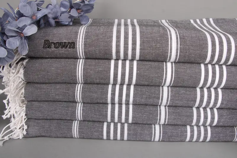 Organic cotton towels, ensuring sustainability and exceptional absorbency, are woven by hand from Turkish cotton. Characterized by a sub-category designation as beach towels, each measures 75x40 inches or 100x190 centimeters, with a weight of 270 grams. There are permissible hand-weaving tolerances of ±2 inches or 5 centimeters.