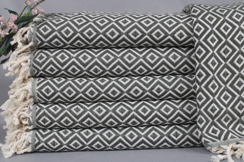 Characterized by its usage of organic Turkish cotton, this towel ensures exceptional absorbency and softness, making it ideal for beach and spa use. Resulting in a product dimensioned at 40x71 inches or 100x180 centimeters, this towel has a weight of 440 grams and exhibits a hand-weaving tolerance of ±2" or 5 centimeters.