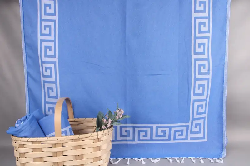 Organic Turkish cotton characterizes the beach towels, small towels, and throws, ensuring quality and comfort. Resulting in a size of 40x71 inches (100x180 centimeters), each item weighs 350 grams with a hand-weaving tolerance of ± 2 inches or 5 centimeters.
