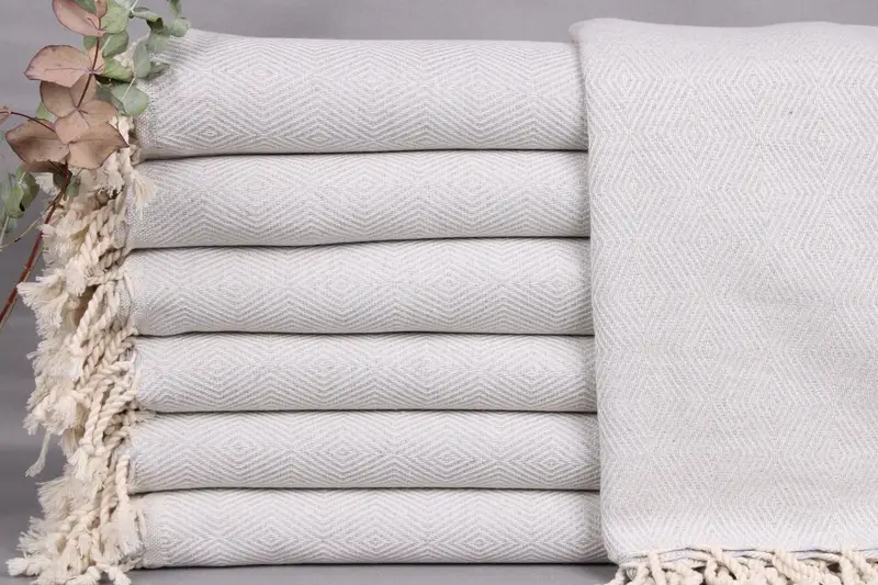 Characterized by high-quality Turkish cotton, these bath towels ensure exceptional absorbency and durability. Each towel measures 40x71 inches or 100x180 centimeters, with a weight of 450 grams, and features a hand-weaving tolerance of ± 2 inches or 5 centimeters. Resulting in a lightweight yet resilient fabric, the towels are suitable for a variety of uses.