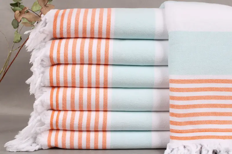 Characterized by handwoven organic Turkish cotton, these towels ensure high absorbency and durability. Measuring 36x67 inches or 90x170 centimeters, and weighing 400 grams, the towels exhibit ±2" or 5cm in size tolerance due to hand-weaving processes. Providing options for embroidery customization, personalization includes specific details such as letters, names, logos, and placement preferences.