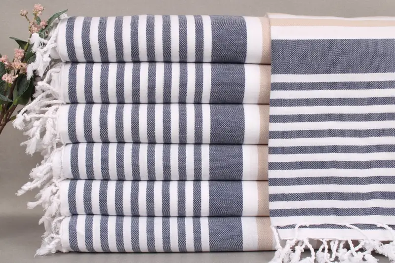 Each listing comprises a single Turkish towel, blanket, or hand towel, meticulously woven from organic Turkish cotton on looms, ensuring superior absorbency and durability. Characterized by dimensions of 36x67 inches or 90x170 centimeters, these towels weigh approximately 274 grams, with a weaving tolerance of ± 2 inches or 5 centimeters. Personalization options include the addition of letters, names, or logos, with embroidery or nameplate placement available.