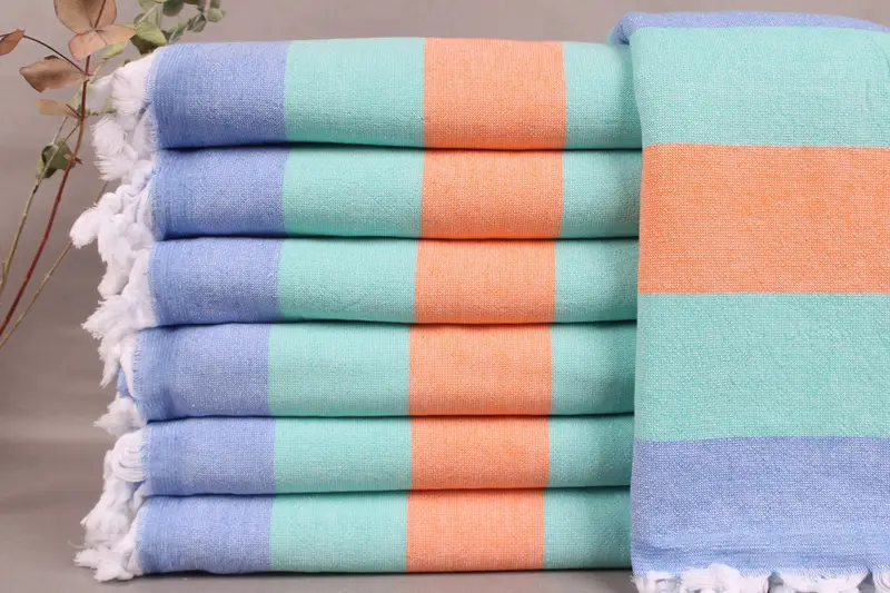 The Organic Towel, characterized by its terry construction, ensures high absorbency and durability, ideal for diverse applications. Each towel measures 36x63 inches or 90x160 centimeters, with a weight of 425 grams. Tolerances in dimensions may occur, resulting in a variance of ± 2" or 5 centimeters due to hand-weaving techniques.