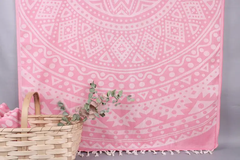 These towels are characterized by their composition of organic Turkish cotton, ensuring high absorbency and soft texture. Each towel measures 40x71 inches or 100x180 centimeters, with a weight of 300 grams. The towels are handmade, with a hand-weaving tolerance of ±2 inches or 5 centimeters.