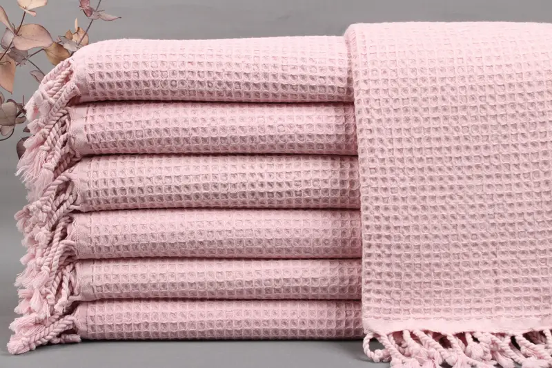 Organic Turkish cotton ensures superior absorbency and durability, characterized by hand-weaving techniques on looms. Resulting in towels measuring 36x67 inches (90x170 centimeters) with a weight range of 375-425 grams, the size may vary by ± 2 inches (5 cm) due to weaving tolerances. Towels are customizable with embroidery or personalized text, with specific instructions for font, color, and placement.
