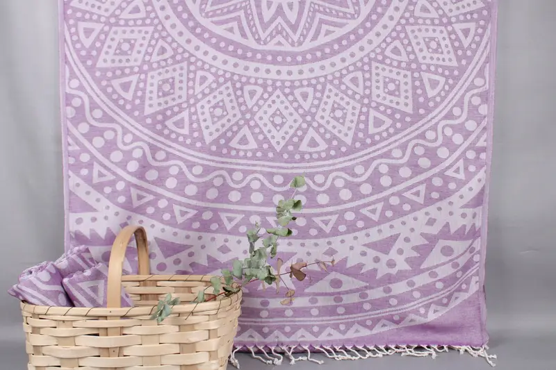 Organic Turkish cotton characterizes the towels, hand towels, or blankets, ensuring high absorbency and durability. The towels come in dimensions of 40x71 inches or 100x180 centimeters, with a weight of 300 grams. Hand-weaving results in a tolerance of ± 2 inches or 5 centimeters in size.