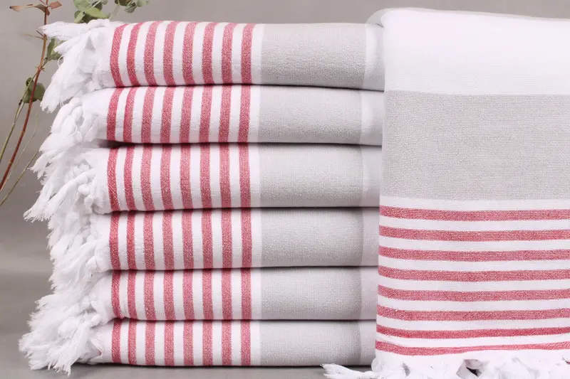 Turkish towels are characterized by their customization options, including embroidery and personalization with letters, names, or logos. Customizations require details such as font, color, and placement to be specified.