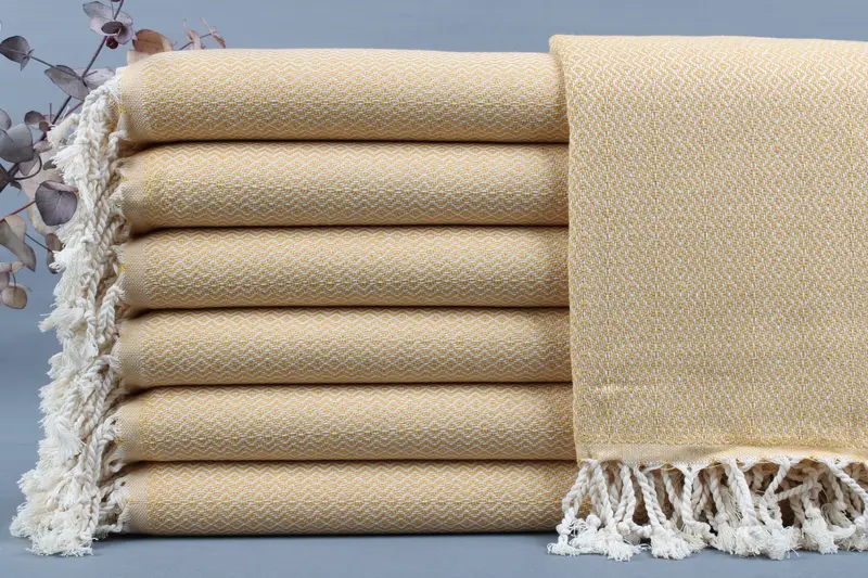Crafted using Turkish cotton, each towel is woven from 100% organic fibers, ensuring high absorbency and durability. Characterized by dimensions of 40x70 inches or 100x180 centimeters, the towels weigh between 425 to 475 grams. Weaving tolerances of ±2 inches or 5 centimeters are expected, resulting in consistent quality.