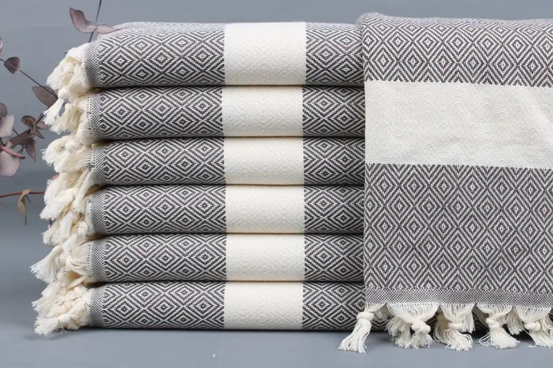 Organic Turkish cotton is characterized by high absorbency and durability, ensuring quality and comfort. Measuring 20x36 inches or 50x90 centimeters, with a weight of 115 grams, these towels have a tolerance of ± 2 inches or 5 centimeters in size due to hand weaving. Customization options include personalized embroidery or name placements on the towels, blankets, or bedspreads.