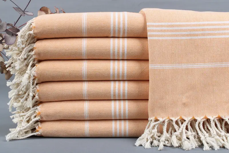 Turkish towels are crafted using organic Turkish cotton, ensuring superior absorbency and durability. Characterized by a weight range of 425-475 grams, these towels measure 40x70 inches or 100x180 centimeters, with a weaving tolerance of ± 2" or 5 centimeters. Resulting in a uniform yet slightly varying size, these items are hand-woven on looms.
