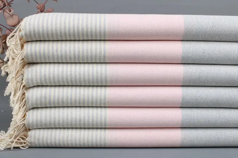 Fiber composition ensures the towels are made from organic Turkish cotton, contributing to high absorbency and softness. Characterized by dimensions of 40x71 inches or 100x180 centimeters, the towels weigh between 425-475 grams, with a hand-weaving tolerance of ± 2 inches or 5 centimeters. Embroidery customization is available, allowing for personalization with letters, names, or logos. Each order over 35 USD qualifies for free shipping worldwide, with packages delivered by FedEx or DHL Express within 2-5 business days. Pre-shrinking is recomme...