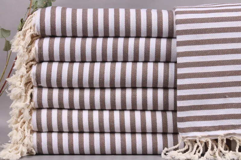 Weaved from organic Turkish cotton, these towels exhibit superior absorbency and durability, resulting in a soft, long-lasting product. Each towel measures 40x71 inches (100x180 cm) with a tolerance of ±2 inches (5 cm), weighing 290 grams. Hand-woven on looms, the tolerances ensure consistent quality in each piece.