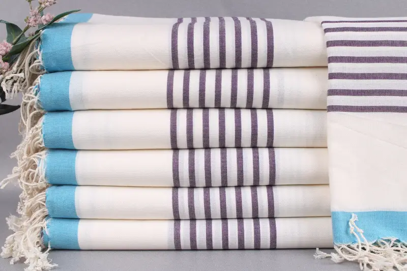 The Turkish towels are customizable with embroidery, featuring personalized letters, names, or logos. This customization can be done with either standard or dafont.com fonts and specified colors, with placement typically recommended at...