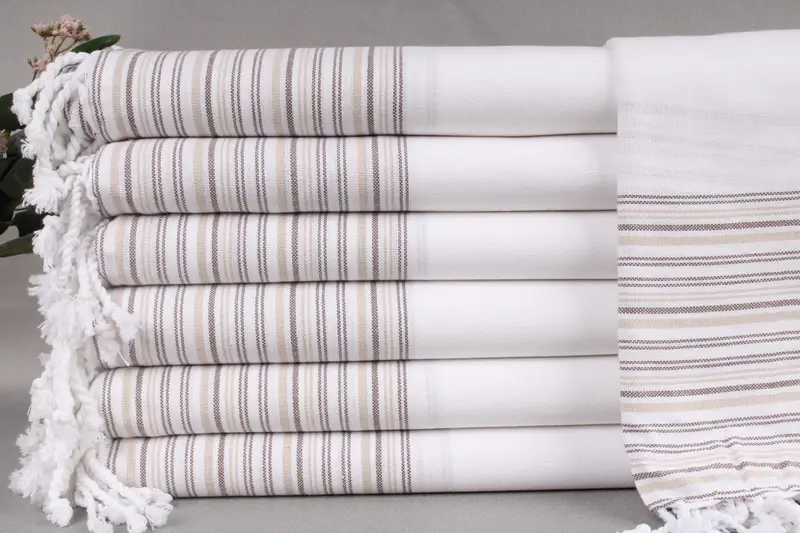 Each item is crafted from Turkish cotton, ensuring a premium texture and high absorbency. Characterized by its 40x71 inches or 100x180 centimeter dimensions, the towel weighs 300 grams, maintaining a tolerance of ± 2 inches or 5cm due to the hand-weaving process. Customization options include embroidery with letters, names, or logos, accompanied by a pre-shrinking step.