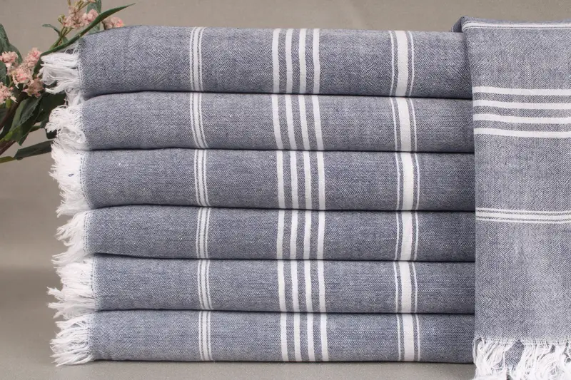 The towels exhibit precision in dimensions and weight, maintaining consistency due to their hand-weaving proce...