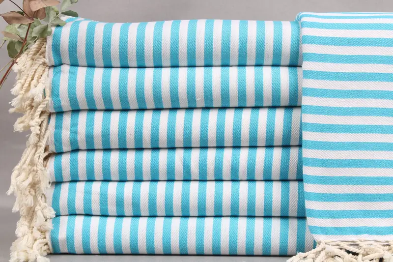 Woven from organic Turkish cotton, the towels are characterized by their exceptional absorbency and soft texture, ensuring optimal performance. Each piece measures 40x76 inches or 100x192 centimeters with a tolerance of ±2 inches or 5 centimeters. Weighing 298 grams, these items are meticulously handwoven, resulting in a unique touch.