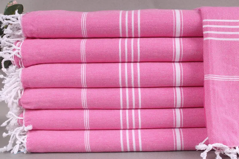 Woven from organic Turkish cotton, the towel ensures high absorbency and durability. Each towel is handmade on looms with a size of 40x71 inches or 100x180 centimeters, weighing 265 grams. Size variations of ±2 inches or 5 centimeters are typical due to the weaving process.