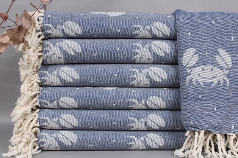 Woven from organic Turkish cotton, these towels exhibit excellent absorbency, ensuring maximum efficiency. Measuring 40x67 inches or 100x170 centimeters with a tolerance of ± 2 inches or 5 centimeters, the towels weigh 420 grams. Hand-woven on looms, these towels can be pre-shrunk by washing them individually for the first two cycles.