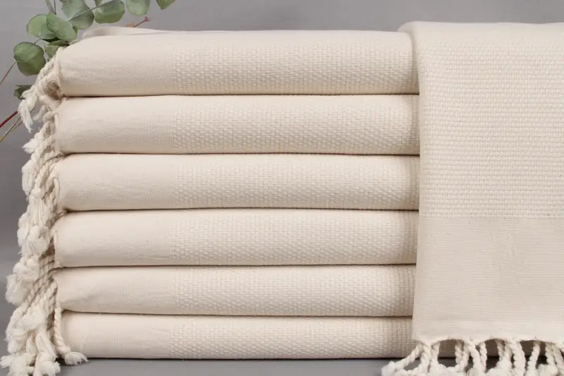 Woven from organic Turkish cotton, the towels are characterized by their high absorbency, ensuring effective moisture wicking and quick drying. Measuring 24x44 inches or 60x110 centimeters, they weigh 140 grams, with a tolerance of ± 2 inches or 5 centimeters due to the hand-weaving process. Customization is available with embroidery options, allowing for the personalization of letters, names, or logos with choices in font and color placement.